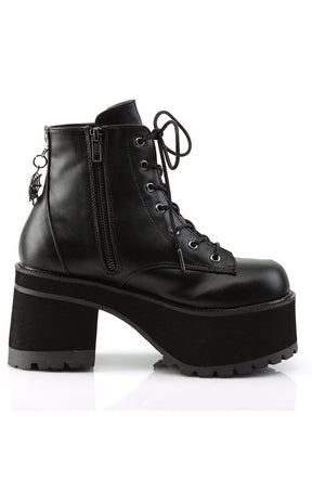 RANGER-105 Black Vegan Leather Platform Ankle Boots