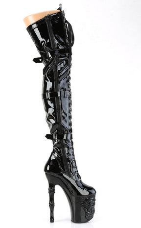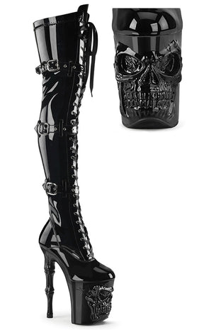 RAPTURE-3028 Black Patent Skull Thigh High Boots