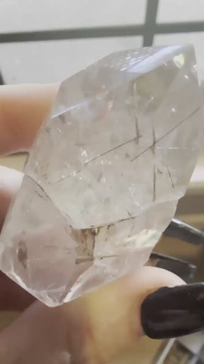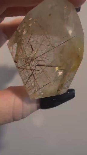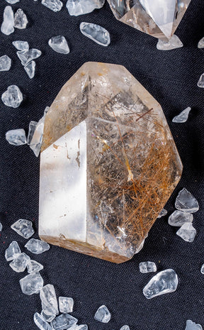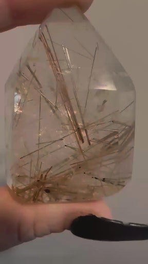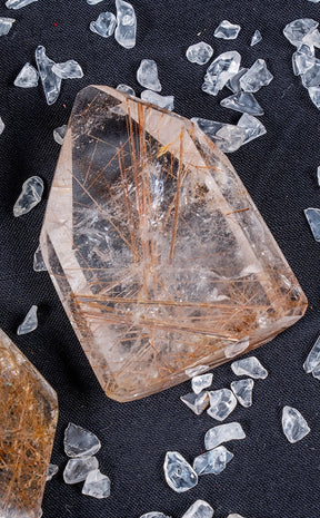 Rutilated quartz is a variety of quartz that contains fibrous needle-like inclusions of rutile. Rutile is an oxide mineral composed primarily of titanium dioxide. Each piece has fascinating inclusions with assorted rutile colors such as dark-red, metallic-gray, brownish-red, orange-red, reddish-black, golden-yellow, straw yellow, or rarely in a green shade. These inclusions can be thin, thick, criss-crossed or parallel, wispy or fat and add a great deal of character to each piece. Each piece is unique with its own charm.