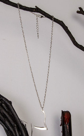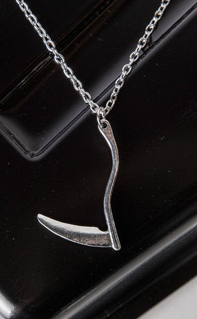 This deceptively simple pendant necklace is an easy way to dress a look up or down. An inverted scythe hangs from a delicate silver chain for stylish reapers and omens of doom alike.