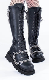 Run with the heart of a rebel in the RENEGADE-215 boots! These babies feature full-length lace-ups and chains all over! The baddest biker boots you'll ever see!