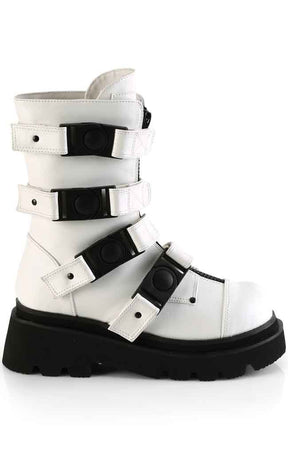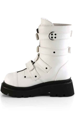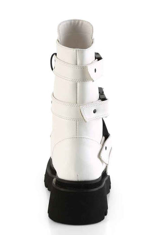 RENEGADE-55 White Vegan Leather Combat Ankle Boots