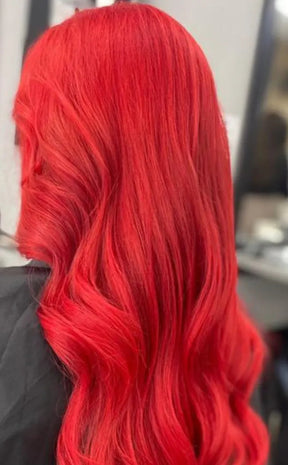 This striking colour, when applied to bleached or pre-lightened hair will be a gorgeous bright red.