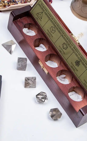 Each set comes with a box and 5 genuine smoky quartz crystals.