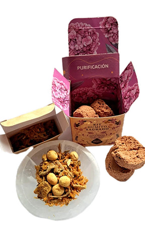 To carry out this ritual, the fragrances of the kit must be lit and so they fill the air with sacred, scented smoke. The invigorating aroma of sage is felt, the healing provided by copal resin and the perfume of jasmine that invites love, this exquisite combination allows you to receive the desired purification.