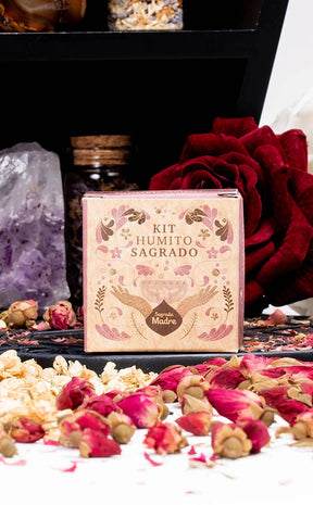 Handmade kit with scented charcoal discs and a packet of herbs, resins and essential oils.