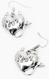 These naughty earrings feature a devilish heart pendant with a silver devil's tail forming a point. Super cute to mix n match with yer evil wardrobe!