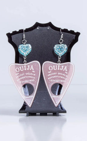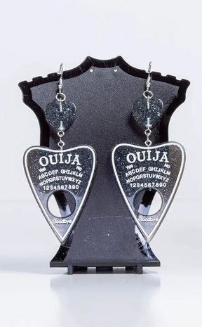 The planchette features a full ouija board print; so be careful not to contact any demons while you're showing off yer fancy lewk!