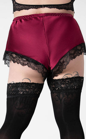 Shed yourself of earthly trappings and slip into the Severina Satin Shorts. The soft satin fabric glides smoothly against the skin, fitting perfectly with an elasticated waistband topped by a ribbon bow. With lacy trims to have you feeling powerful and fancy, you'll never lounge around or slumber unfashionably again!