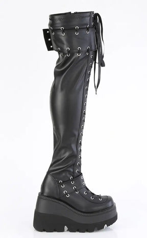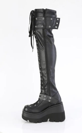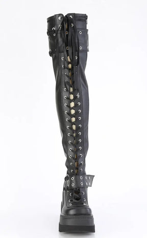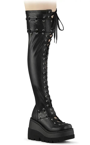 SHAKER-325 Black Stretch Thigh-High Platform Boots-Demonia-Tragic Beautiful