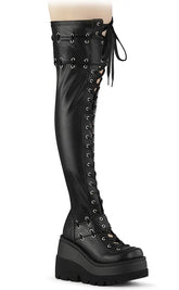 SHAKER-325 Black Stretch Thigh-High Platform Boots