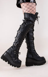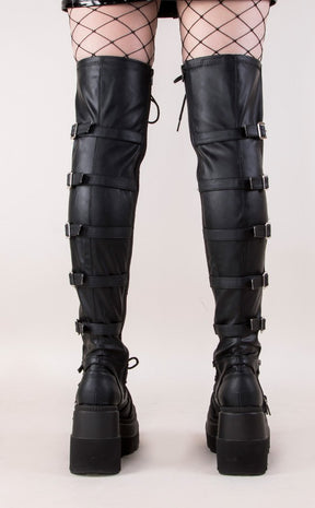 SHAKER-350 Black Vegan Leather Thigh High Platform Boots
