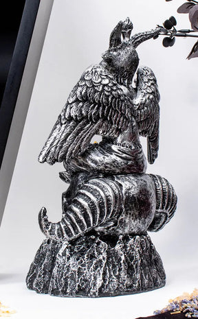 This ornate incense burner is designed for the incense smoke to weave through the rocks as it descends downward from where Baphomet is seated. Made of cold cast resin, the terrain is beautifully hand-painted in charcoal grey whilst Baphomet has a bronze effect.