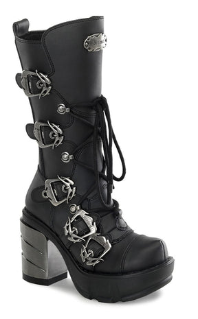 Sinister soles for sinister folks! These studded, chunky shoes are perfect for those who prefer a thicker heel.
