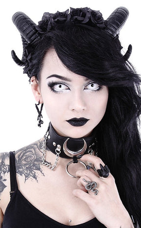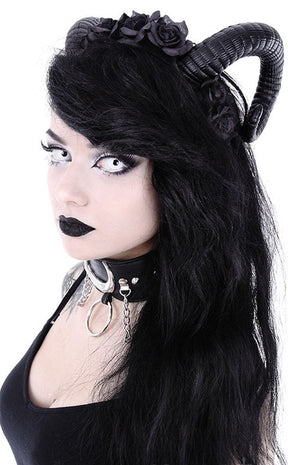 Gothic headpiece with gorgeous demonic horns and 12 stunning black roses.