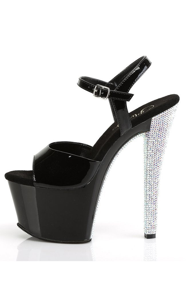 SKY-309CHRS Black & Silver Rhinestone Platform Heels
