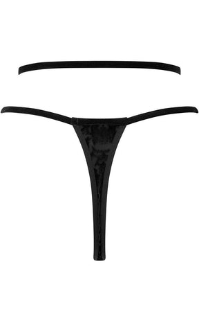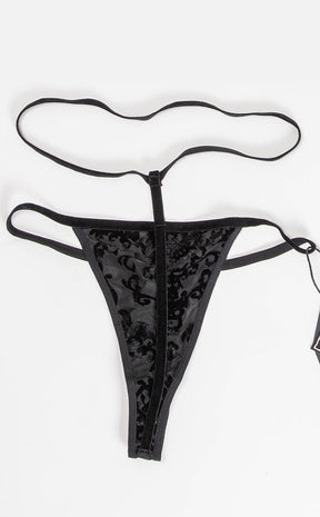 Ger yer midnight magic on with the Sleepin' Curse panty! This G string comes with sexy accent hip straps and gorgeous burnout velvet to have you truly feeling your witchy self.