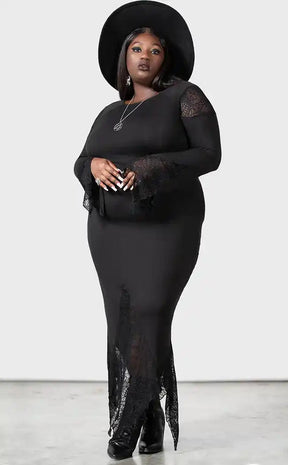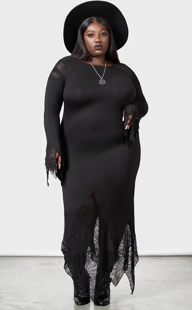 This standout black maxi dress from Killstar is made from a soft stretch see-through spiderweb lace fabric with a relaxed batwing tunic fit that drapes to perfection.
