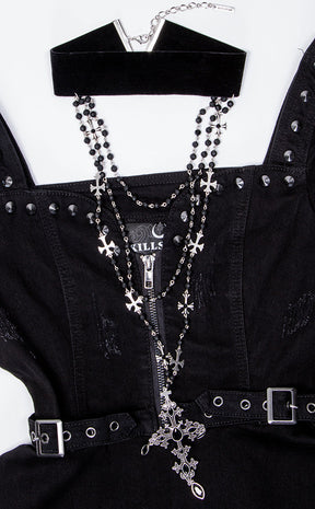 Bring out yer nosferatu chic with the Summon The Night Choker! A soft, adjustable choker ban holds layers of rosary beads, cascading down your chest to show off the elegant cross pendant.