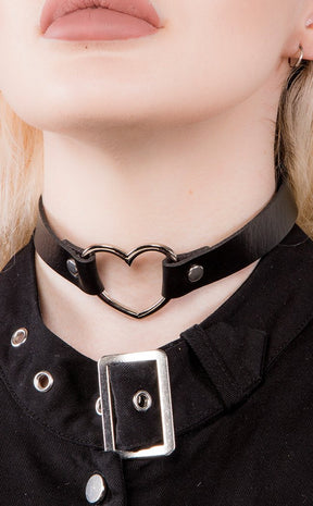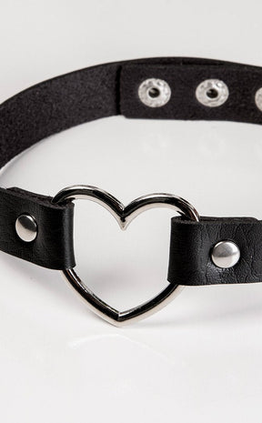 Start a love affair with the Sweetheart Choker! A band of luxe vegan leather holds a heart ring, a simple statement piece that adds the final touch to any darkling's outfit.