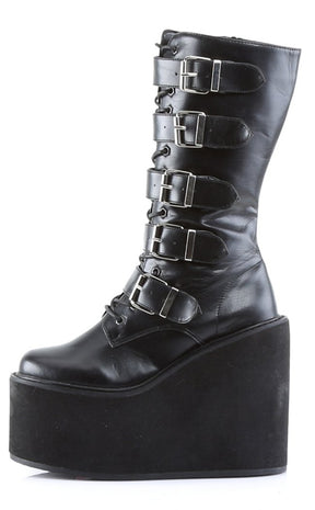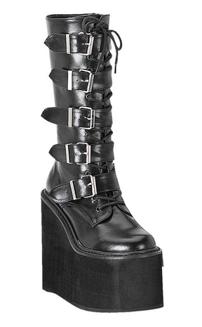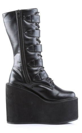 SWING-220 Black Vegan Leather Platform Knee High Boots