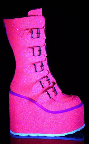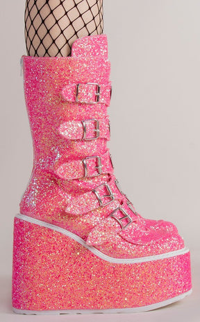 SWING-230G Pink UV Glitter Platform Mid-Calf Boots