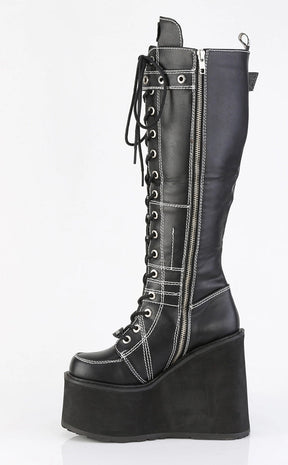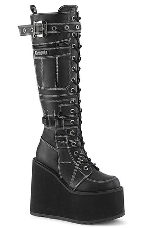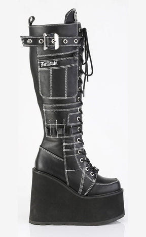 Swing your way into the club with this series of platform wedged boots and shoes, with buckles and straps and decals galore!