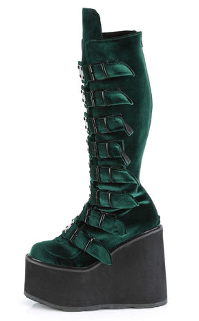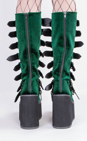 SWING-815 Emerald Velvet Trinity Platform Knee High Boots