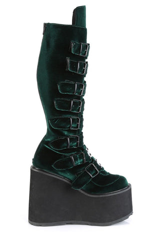 SWING-815 Emerald Velvet Trinity Platform Knee High Boots (Au Stock)