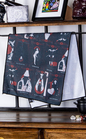 The Tarot Hand Towel is a must-have for every witchy bathroom! The super absorbent yet light microfibre fabric is printed with contrasting artwork of gorgeous tarot cards. Or use as a mini altar cloth.