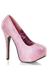 TEEZE-06R Baby Pink Satin Iridescent Rhinestone Heels