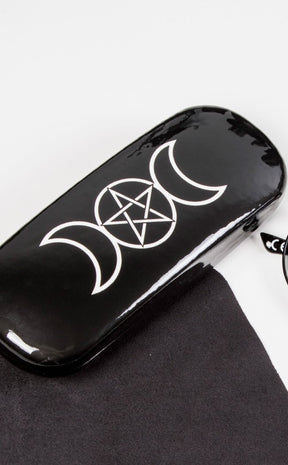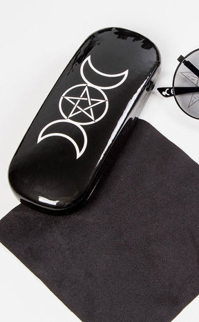 Keep your specs safe in your own witchy way! This hardy case features the triple moon symbol with a pentagram at the centre in a simple, classy layout. Each case also comes with a bonus cleaning cloth so you'll never have to deal with those darn, evil smudges.