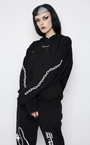 With chunky chain prints to the sleeves, this oversized hoodie is finished with an oversized graphic to the back that screams of desolation.
