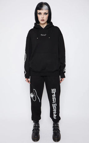 The Unholy oversized hoodie is made from a heavyweight, soft fleece-backed jersey and features a large front pocket, drawstrings, and is finished with our signature metal hardware.