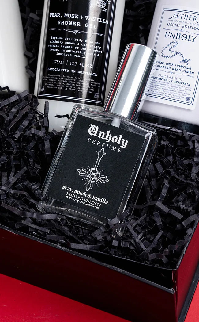 - Unholy Full Sized Perfume - our holy grail perfume that is requested by all - this is a gorgeous scent that we've had numerous requests to bring back. So it was a no-brainer to include it here. There are two versions: