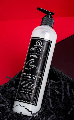 Unholy Shower Gel 375ml - your favourite pear, musk and vanilla scent in our creamy, lather rich vegan shower gel.