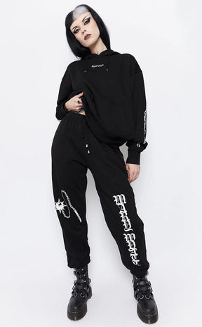 Soon to be your new faves, these sweatpants feature a heavy Mary Wyatt text to the leg and contrasting flail graphic to the other.
