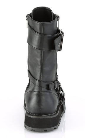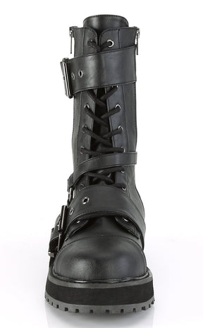 Demonia's Valor boot is a classic combat-style. Added chunky buckled straps give them that bad boy twist.