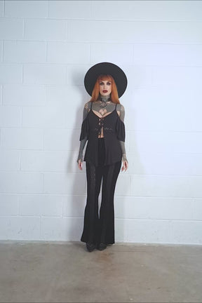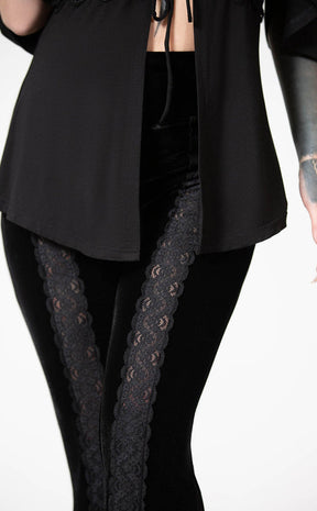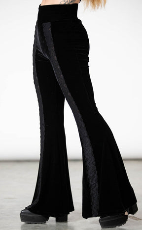 Worship your legs with velvet and lace! The Verna Bell bottoms feature soft, stretch velvet that forms flared legs and a high, wide waistband. A lace inset in the legs turns these into a statement piece that'll have them saying "wow"!