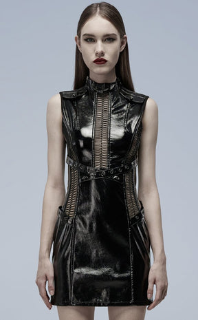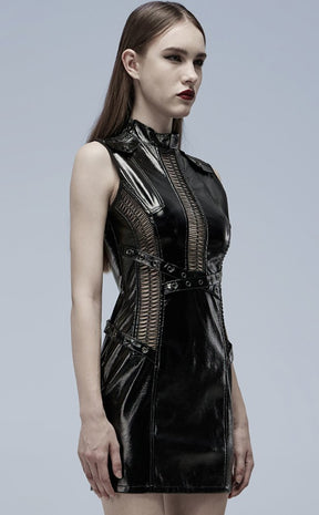 The Vertebrae Faux leather dress is the sexiest number you could ever lip into. The stretch PU leather forms a high waisted mini fit, shaping to and moving with your figure. Openwork panels at the back, chest and sides create flattering lines with a unique bone-look effect, enhanced by extra deets like eyelet waist and hip straps.