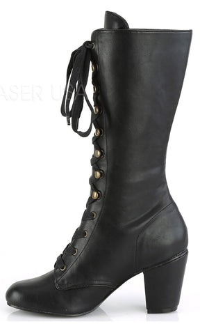 VIVIKA-205 Black Steampunk Vegan Leather Boots (Au Stock)