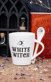 Start your morning off with a splash of magick with the White Witch Mug & Spoon Set!