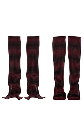 Run rabid in the Wild Things Legwarmers! These mall goth must-haves are super stretchy, sitting snug on yer legs just below the knee, flaring out at the ankles with a side slit. The ribbed fabric features ombre stripes to add a cheeky y2k touch to all yer lewks.