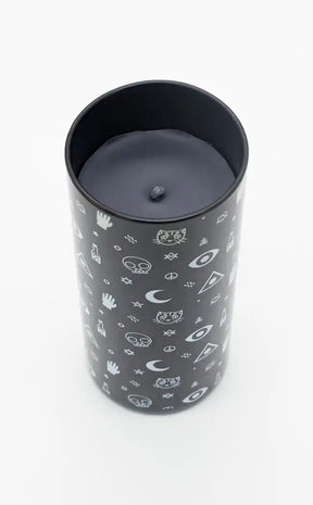 Featuring a reusable black glass jar covered in witchy symbols, this candle is an aesthetically pleasing addition to any space you want to goth up a bit. This enchanting candle is made from paraffin wax and has a burn time of 48 hours.