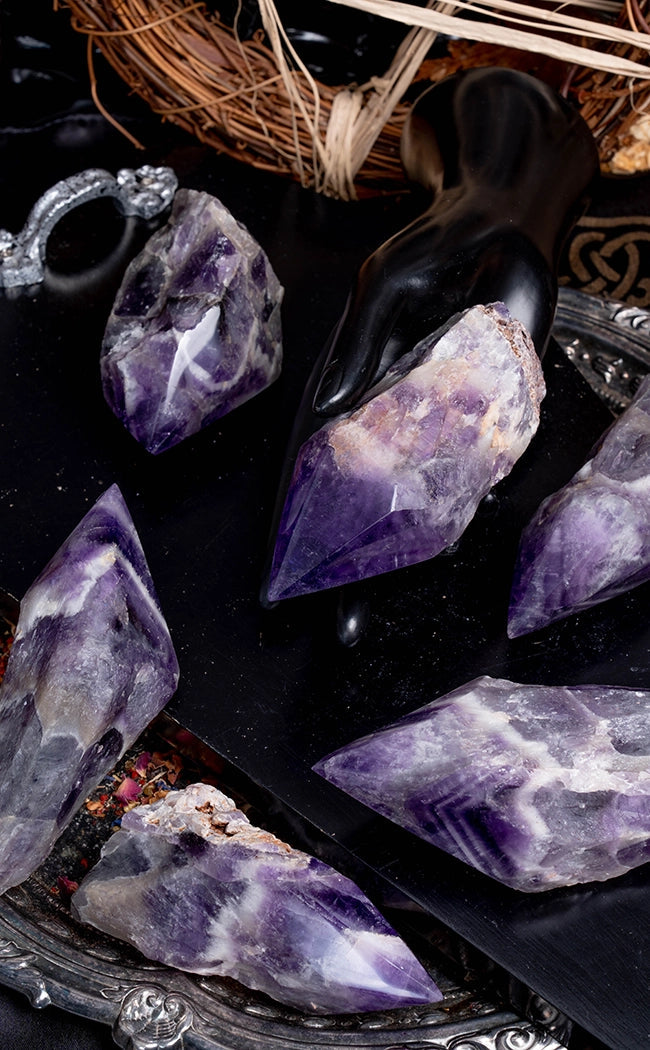 These points are stunning! Polished at the point into beautifully banded specimens. Super rare to get this sze dream amethyst points like this.