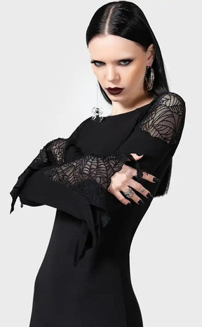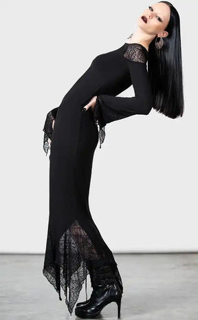 This breathtaking black maxi dress from Killstar is made from a soft stretch fabric that hugs your curves and drapes to perfection.