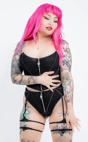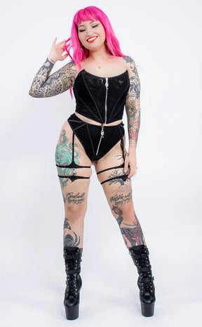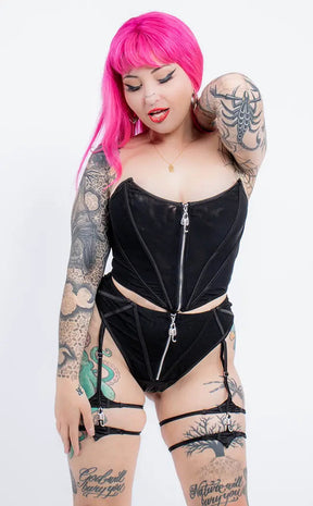 Pure venom. The Venomatrix Bustier by Hexxxed. We are so excited to bring you our first line of luxury goth lingerie - After Midnight