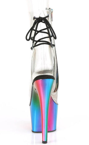ADORE-1018RC Clear & Rainbow Chrome Ankle Boots