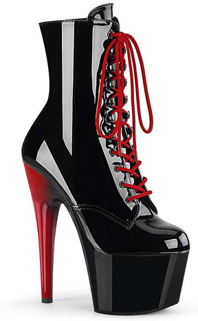 Look damn hot in the ADORE-1020 boots! These babies feature a red to black ombre platform, a black patent upper and contrasting red laces to make 'em pop. The boots secure with an inside zip closure for easy on/off.