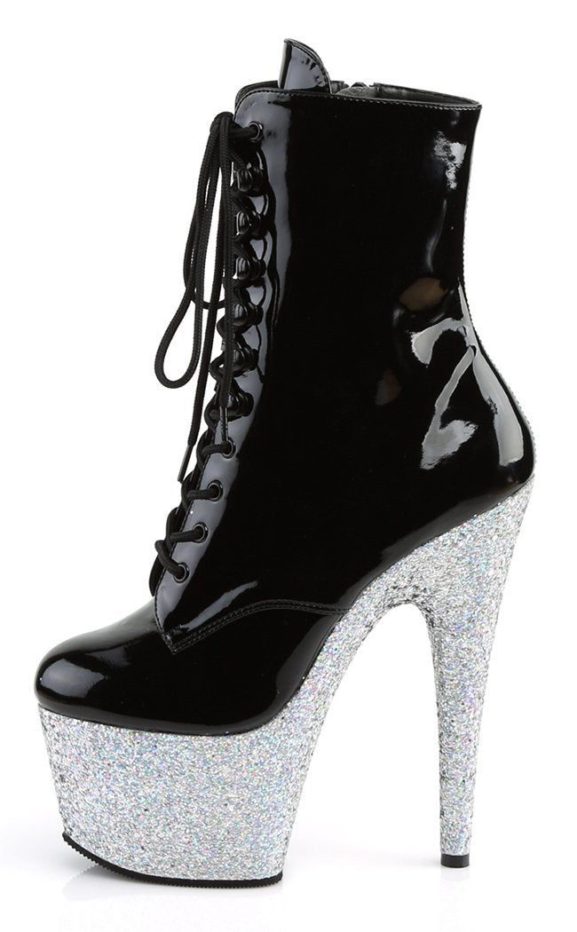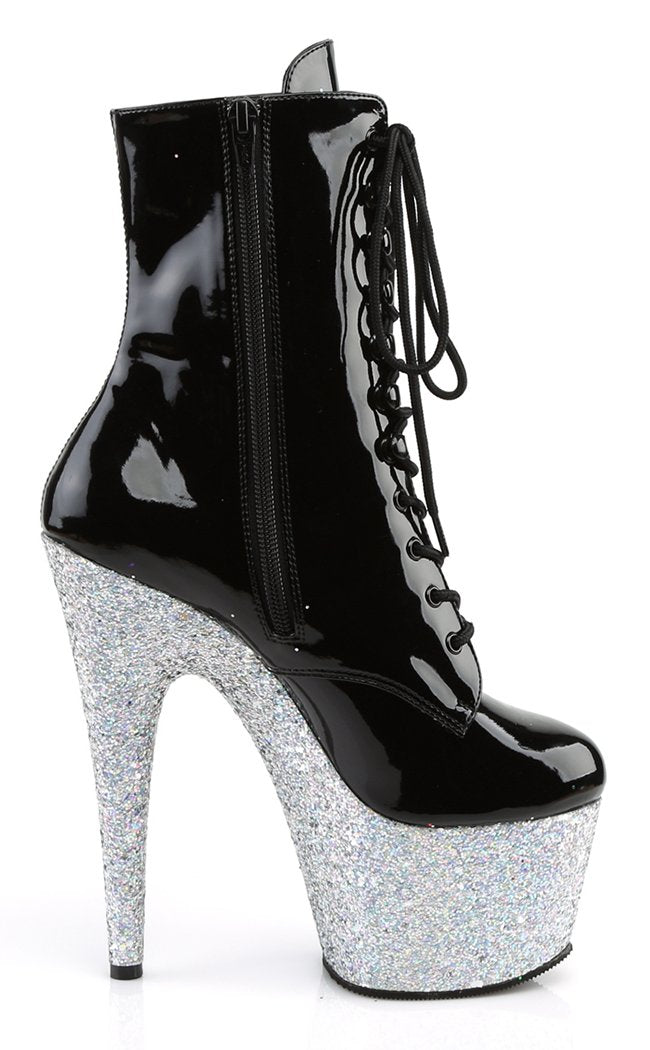 ADORE-1020LG Black Silver Multi Glitter Ankle Boots